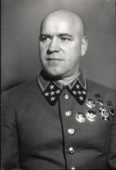 1945年4月16日,指挥白俄罗斯第一方面军协同白俄罗斯第二方面军与乌克兰第一方面军进行柏林战役。4月30日,该方面军的第3突击集团军伊德里察第150步兵师将胜利的旗帜插到了国会大厦穹顶,宣告着苏联红军攻占了柏林。